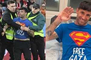 《羅馬體育報》表示,這位球迷名叫馬里奧-費里,過去曾多次在體育比賽中闖進體育場。在2022年卡塔爾世界杯,葡萄牙對烏拉圭的比賽時,他也曾手持彩虹旗沖進球場,當(dāng)時他的T恤寫著“拯救烏克蘭”的口號。