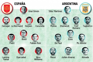 體育資訊10月13日訊 根據(jù)《馬卡報(bào)》報(bào)道,西班牙隊(duì)vs阿根廷隊(duì)的歐美杯可能明年3月在多哈進(jìn)行,《馬卡報(bào)》隨后撰文對(duì)比了兩隊(duì)首發(fā)情況。