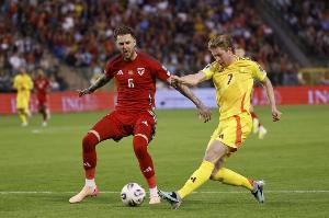 體育資訊10月14日訊 比利時(shí)對(duì)陣威爾士的比賽正在進(jìn)行中,比利時(shí)2-1領(lǐng)先,德布勞內(nèi)點(diǎn)射破門(mén)。