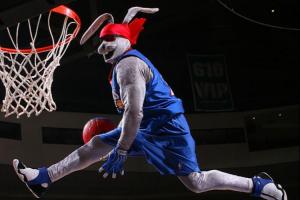 據(jù)了解,“嘻哈”是76人從1998年1月15日至2011年11月22日的吉祥物,是一個(gè)兔子形象的角色,通常會(huì)在比賽間歇時(shí)表演蹦床雜技扣籃,他還有一個(gè)小助手“小嘻哈”。“嘻哈”的扮演者比爾-羅特是前美國(guó)男子藝術(shù)體操國(guó)家隊(duì)成員,曾在1995年泛美運(yùn)動(dòng)會(huì)上獲得1金2銀,“小嘻哈”則由他的女兒扮演。