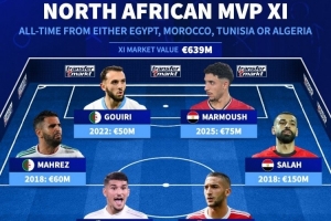 北非歷史身價(jià)最高陣容(取球員的最高身價(jià)):
