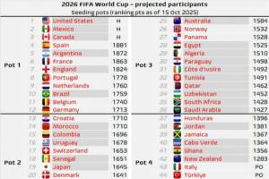 體育資訊10月15日訊 10月國際比賽日結(jié)束,距離世界杯12月抽簽只差2個月,各隊只剩11月國際比賽日能夠獲得積分。