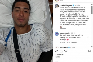 貝林厄姆寫道:“感謝安德魯-華萊士、蘇珊-亞歷山大及其醫(yī)療團隊,以及Fortius診所的所有工作人員,感謝熱情接待并成功完成手術。還要感謝伊萬-奧爾特加和萊耶斯醫(yī)生特意前來支持。最后,感謝所有人的美好祝愿。我已經(jīng)開始了復出進程,很快就會與大家見面?!?/p>