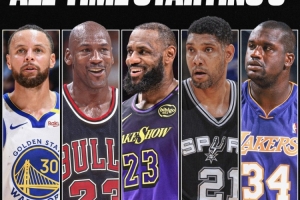 他們分別是:?jiǎn)痰?、詹姆斯、?kù)里、奧尼爾、鄧肯。