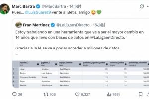 目前效力于貝蒂斯的巴爾特拉在社交媒體上轉(zhuǎn)發(fā)了這條動態(tài),配文調(diào)侃:“那么…蘇亞雷斯,來貝蒂斯吧,哥們。”