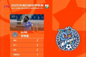 在2025華潤飲料中甲聯(lián)賽第16輪比賽中,佛山南獅足球俱樂部坐鎮(zhèn)主場對陣深圳青年人。比賽第11分鐘,佛山南獅球員安特維接到尼古拉斯的直塞后,突入禁區(qū)左腳挑射破門;第36分鐘,安特維再次接到尼古拉斯送出的直塞,晃過門將后左腳推射破門,上演梅開二度,幫助佛山南獅2比1擊敗對手。