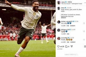 體育資訊10月18日訊 今天,切爾西在英超3-0擊敗諾丁漢森林,里斯-詹姆斯賽后在Instagram發(fā)文,慶祝個(gè)人藍(lán)軍生涯200場里程碑。