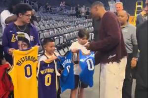 相關(guān)閱讀:國王新援!威少到場(chǎng)觀戰(zhàn) 與湖人助教布魯克斯開心交流
