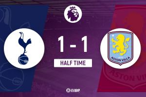 體育資訊10月19日訊 北京時(shí)間21:00,英超第8輪熱刺vs阿斯頓維拉,比賽在新托特納姆熱刺球場打響!上半場,本坦庫爾破門;庫杜斯進(jìn)球被吹越位!羅杰斯半場前世界波扳平!半場結(jié)束,熱刺暫時(shí)1-1維拉。