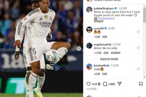 貝林厄姆社媒曬出比賽照片,配文:“在這里比賽從來都不輕松,但以一場苦戰(zhàn)拿下三分,開啟新的一周。”
