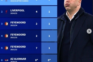 23/24賽季費(fèi)耶諾德,聯(lián)賽2場(chǎng)失利,最長(zhǎng)連敗1場(chǎng)