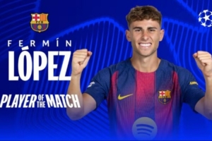 體育資訊10月22日訊 歐冠聯(lián)賽階段第3輪,巴塞羅那主場6-1奧林匹亞科斯。費(fèi)爾明首發(fā)出戰(zhàn),賽后被評為全場最佳球員。
