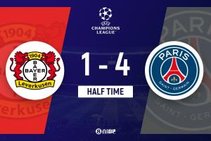 體育資訊10月22日訊 北京時(shí)間10月22日凌晨3時(shí),歐冠聯(lián)賽階段第3輪,巴黎做客拜耳競技場對陣?yán)瘴謳焐I习雸?,帕喬首開紀(jì)錄,隨后扎巴爾尼送點(diǎn),格里馬爾多罰丟點(diǎn)球,安德里希肘擊犯規(guī)被紅牌罰下,隨后扎巴爾尼犯規(guī)領(lǐng)到紅點(diǎn)套餐,阿萊克斯-加西亞點(diǎn)射扳平,杜埃雙響、克瓦拉茨赫利亞傳射。半場戰(zhàn)罷,巴黎暫4-1領(lǐng)先勒沃庫森。