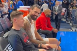火箭隨隊(duì)記者Danielle Lerner賽前報(bào)道:“但當(dāng)杜蘭特走進(jìn)球場(chǎng)時(shí),一些雷霆球迷向他發(fā)出了噓聲,亞當(dāng)斯也開玩笑地加入其中?!?/p>