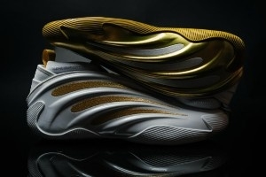 非常符合今天戒指之夜的主題,白金的鴛鴦配色。細節(jié)上有標志性的慶祝手勢,鞋底還有總冠軍獎杯圖案,鞋墊處則有偶像科比的畫像。