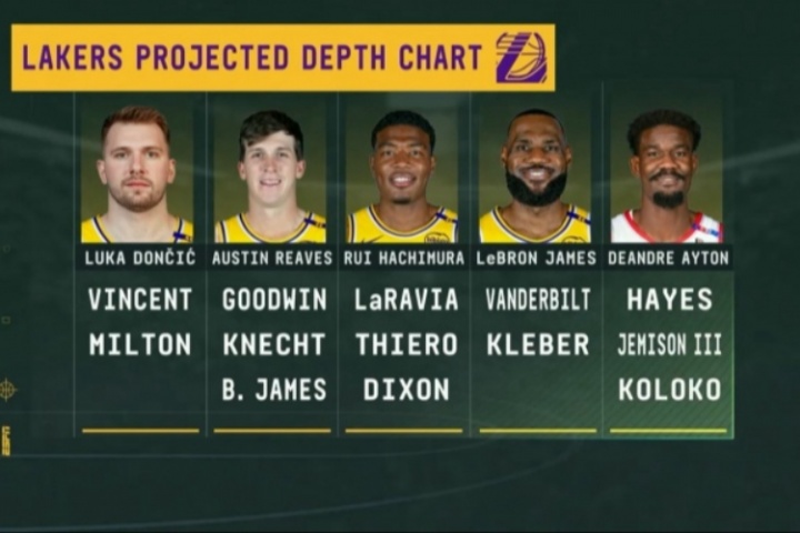 比賽期間轉(zhuǎn)播方曬出湖人目前的陣容深度: