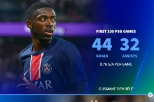 體育資訊10月22日訊 在本輪歐冠巴黎7-2擊敗勒沃庫(kù)森的比賽中,登貝萊迎來(lái)巴黎生涯100場(chǎng)里程碑,德轉(zhuǎn)也對(duì)比了登貝萊與內(nèi)馬爾、伊布、姆巴佩等人在巴黎前100場(chǎng)參與進(jìn)球數(shù)據(jù):