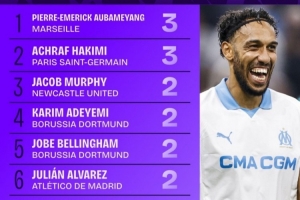 1.奧巴梅揚(馬賽):3