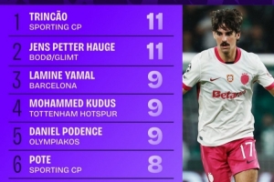 體育資訊10月23日訊 本賽季歐冠聯(lián)賽階段已戰(zhàn)罷3輪,Squawka統(tǒng)計(jì)了到目前為止完成過(guò)人榜單,葡體前鋒特林康和博德閃耀攻擊手海于格都是11次,分列前二。