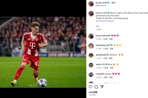 他也在賽后通過社媒曬出自己的比賽照并配文:“在安聯(lián)球場的精彩一夜,球隊的表現(xiàn)也太出色了!感謝球迷們,我們會繼續(xù)前進。”