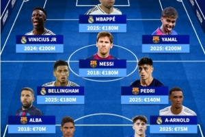 體育資訊10月24日訊 本周末,西甲將上演萬眾矚目的西班牙國家德比。德國轉(zhuǎn)會市場盤點(diǎn)了皇馬和巴薩球員歷史身價最高陣,梅西、姆巴佩、亞馬爾等悉數(shù)在列。