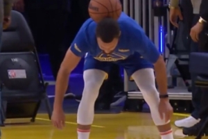 庫里大秀足球技巧脖子接球 logo shot穩(wěn)穩(wěn)命中