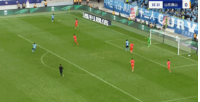 第35分鐘,劉祝潤內(nèi)切彈地球破門,王大雷撲救不及,大連英博1-0山東泰山!