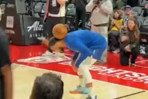 勇士背靠背挑戰(zhàn)開(kāi)拓者,賽前在球迷的呼喊聲中,庫(kù)里和助教玩足球傳球,之后三分命中。