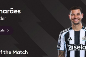 本場比賽紐卡球員吉馬良斯在第90分鐘打進(jìn)絕殺,賽后當(dāng)選英超官方球迷票選全場最佳球員。