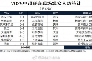 本輪總觀眾人數(shù)244693人,為中超史上單輪觀眾總人數(shù)第三多的一輪。該紀錄第一是2016中超第2輪創(chuàng)造的265539人,其次是今年第10輪創(chuàng)造的257724人。 ???