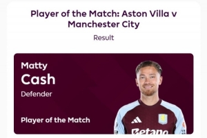 據(jù)賽后英超官方的消息,打進制勝進球的卡什當選此役全場最佳球員,在評選中獲得58%的投票。
