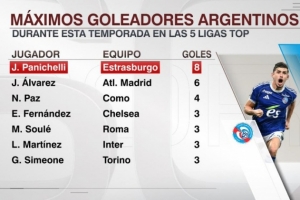 體育資訊10月27日訊 ESPN統(tǒng)計了阿根廷球員在本賽季五大聯(lián)賽中的進(jìn)球數(shù)量,并列出五大聯(lián)賽阿根廷球員射手榜,斯特拉斯堡大中鋒帕尼切利8球居首。