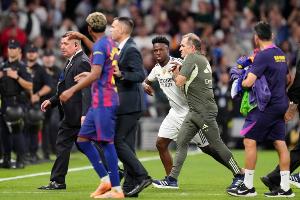 體育資訊10月27日訊 西班牙國(guó)家德比皇馬2-1擊敗巴薩,TA發(fā)文梳理本場(chǎng)比賽最后階段的一系列亂象,由于球員情緒失控,警察出面干預(yù)才將球員分開。