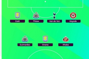 后衛(wèi):卡什(阿斯頓維拉)、佳夫(紐卡斯?fàn)枺?、范德芬(熱刺)、邁克爾-卡約德(布倫特福德)