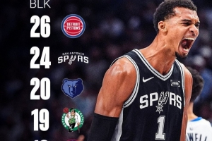 體育資訊10月28日訊 歐媒BasketNews報(bào)道,賽季至今文班出場(chǎng)三場(chǎng)比賽,共計(jì)送出18次封蓋,場(chǎng)均可以貢獻(xiàn)6次封蓋。