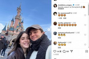 瑪達萊娜與內(nèi)維斯一起來到迪士尼樂園游玩,瑪達萊娜社媒曬出照片,配文:“迪士尼樂園萬圣季。”