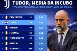圖多爾帶隊(duì)場均1.58分,是21世紀(jì)場均積分并列第二少的尤文教練