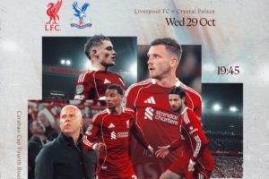 體育資訊10月29日訊 北京時間10月30日3:45,聯賽杯第4輪,利物浦主場對陣水晶宮,利物浦官方發(fā)布海報預熱。