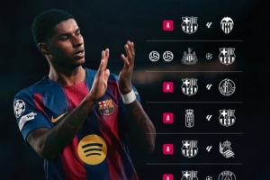 歐冠聯(lián)賽階段第1輪,巴薩2-1紐卡,拉什福德梅開(kāi)二度