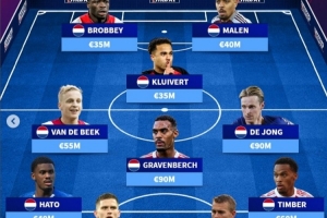 體育資訊10月30日訊 《轉(zhuǎn)會(huì)市場(chǎng)》統(tǒng)計(jì)了阿賈克斯現(xiàn)役青訓(xùn)球員的巔峰身價(jià)情況,并列出一套最貴陣。