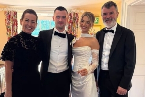 體育資訊10月30日訊 據(jù)《太陽(yáng)報(bào)》報(bào)道,曼聯(lián)傳奇羅伊-基恩的兒子艾丹上周末舉行了婚禮?;髟谏缑椒窒砹艘粡埣彝ズ嫌?,照片中他身穿燕尾服與妻子特蕾莎和新婚夫婦站在一起。