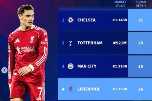 體育資訊10月30日訊 利物浦在本輪聯(lián)賽杯做出大輪換最終主場(chǎng)0-3完敗水晶宮,斯洛特在賽后抱怨球隊(duì)人手不足。《轉(zhuǎn)會(huì)市場(chǎng)》則統(tǒng)計(jì)了BIG6的陣容深度情況。