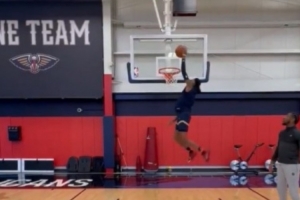 體育資訊10月31日訊 今天遭遇跟腱斷裂的鵜鶘球員德章泰-穆雷更新推特,他一段自己轉身空接暴扣的視頻,并寫道: