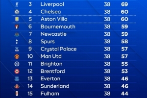 體育資訊10月31日訊 Opta數(shù)據(jù)給出了最新一期的2025/26賽季英超聯(lián)賽最終排名預(yù)測,阿森納奪冠。