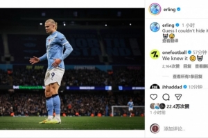 下一篇: 福登社媒曬圖慶祝里程碑:很榮幸代表我的俱樂部在英超出場200次