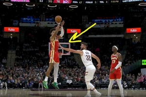 GIF-杰倫-約翰遜壓哨三分但是超時!
