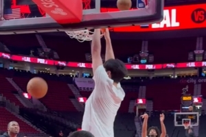 賽前,開拓者跟隊(duì)記者@yovic曬出視頻,楊瀚森與助教羅尼-伯勒爾連續(xù)對抗熱身,籃下終結(jié)連續(xù)暴扣,勾手也連續(xù)命中。