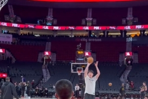 賽前,開拓者跟隊(duì)記者@yovic曬出視頻,楊瀚森賽前投籃熱身試投三分手感不俗。