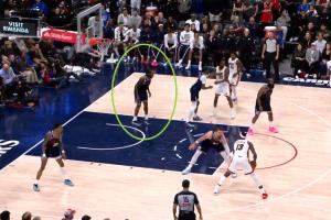 最后28秒,小卡在油漆區(qū)停留超過(guò)了三秒,且沒(méi)有立即積極防守對(duì)方,應(yīng)該吹罰防守三秒違例,熱火應(yīng)罰一球,裁判漏吹。