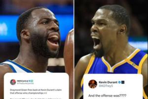 杜蘭特轉(zhuǎn)發(fā)了這則采訪對(duì)話,用評(píng)論繼續(xù)堅(jiān)持自己的觀點(diǎn):“當(dāng)時(shí)的進(jìn)攻呢?”